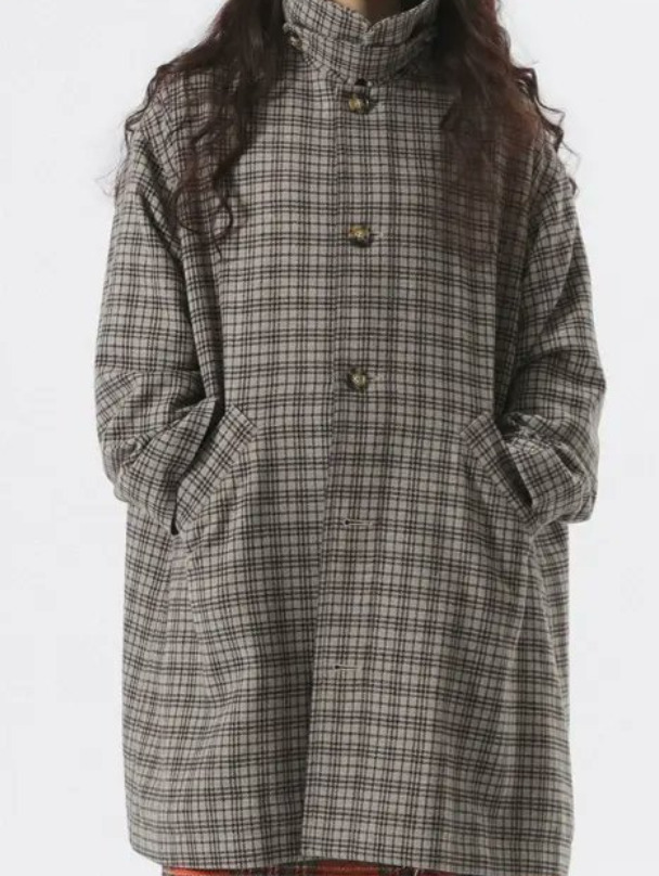 - アイテム名:スライバー タータンチェック ノーカラー コート